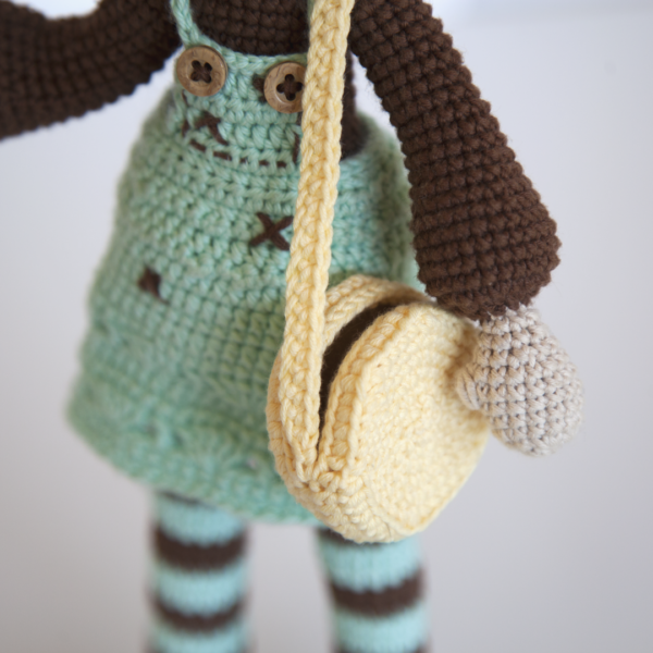 This instantly downloadable PDF crochet pattern provides clear, easy to read instructions with guide photographs to make the cute ‘Minnie Mint Choc Chip’ doll pictured above. When made using lightweight yarn and a 2 mm hook, this doll stands approximately 27cm / 10.5 inches tall. This pattern is INTERMEDIATE to ADVANCED level.